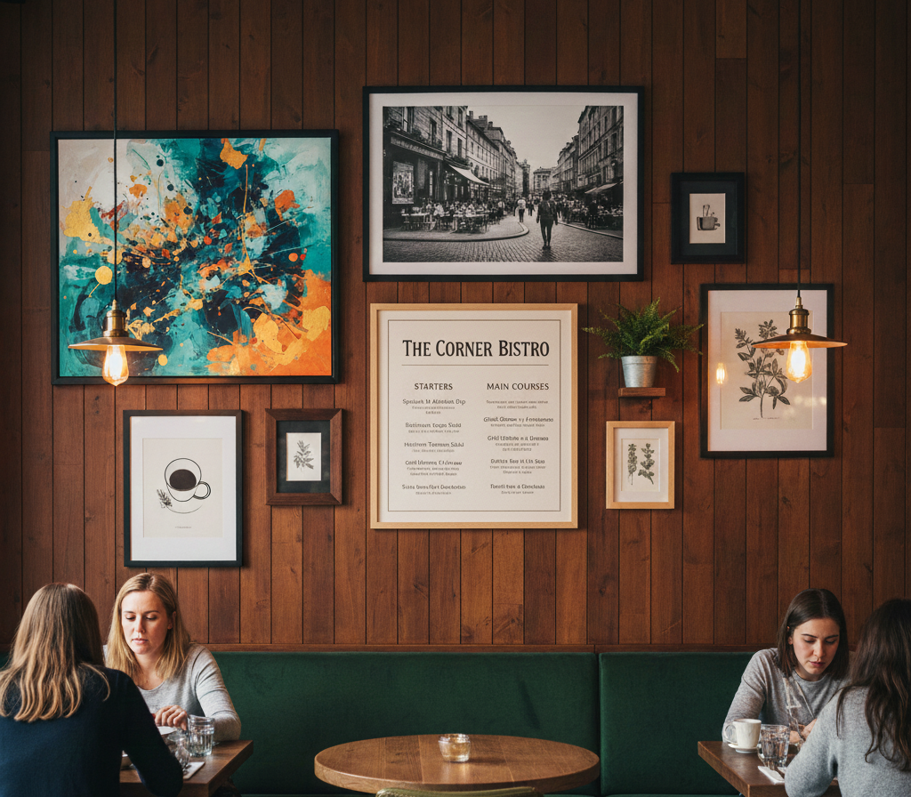 Bring your vision to life with expert guidance from our design team. Whether you’re curating a single statement wall or outfitting an entire space, we’ll help with layout, sizing, and style choices—ensuring your frames perfectly complement your brand and environment.